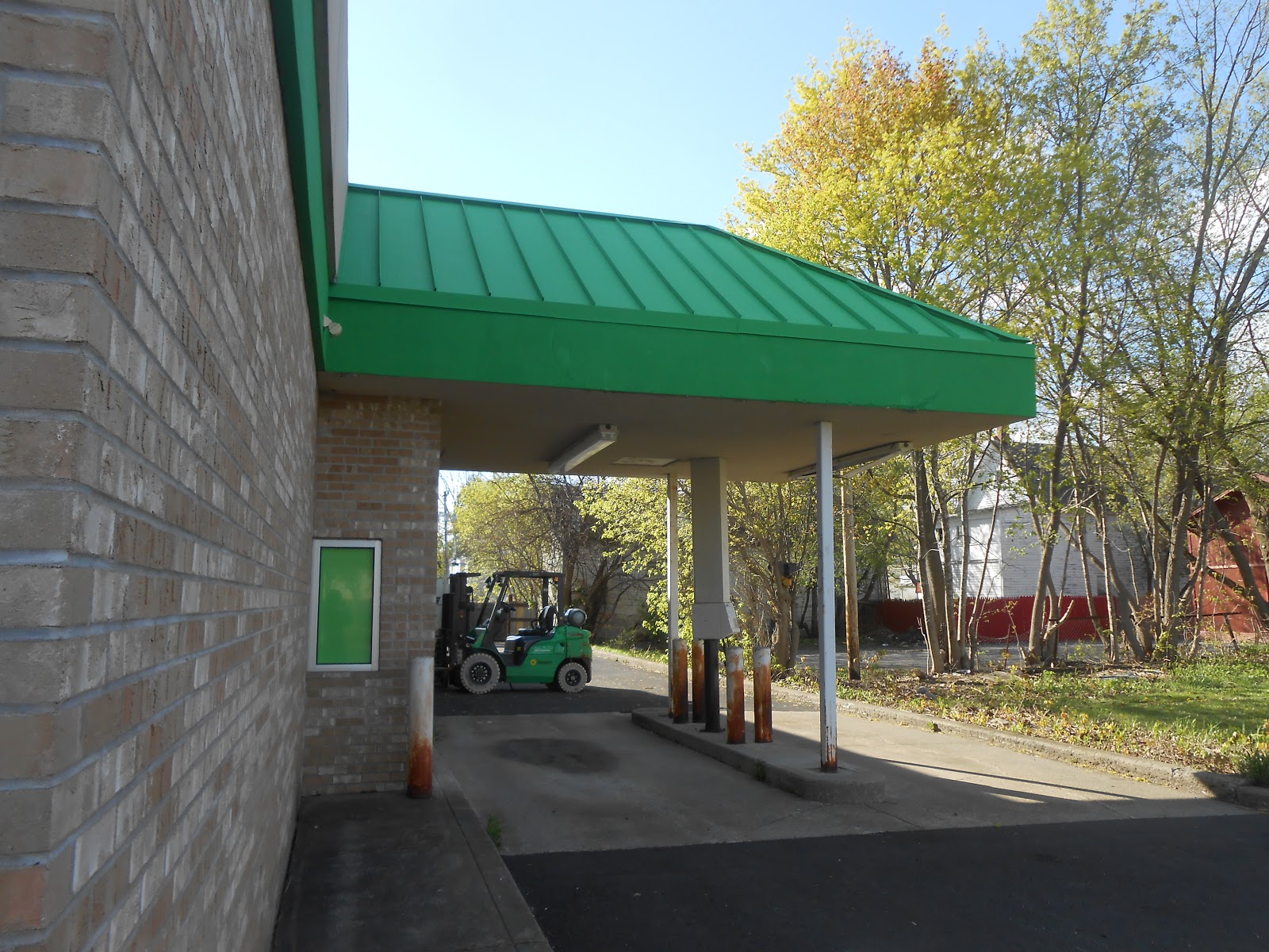 Even though the trim was painted green, scars and wiring from the Rite Aid signs are still fully intact. This one would have read "Pharmacy" and "Department Within".